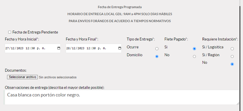 - También deberemos agregar observaciones de entrega es decir que el cliente especifique para que se más fácil la entrega. (Mencionar si es un segundo piso, si habrá que subir escaleras, si existe un elevador etc.),